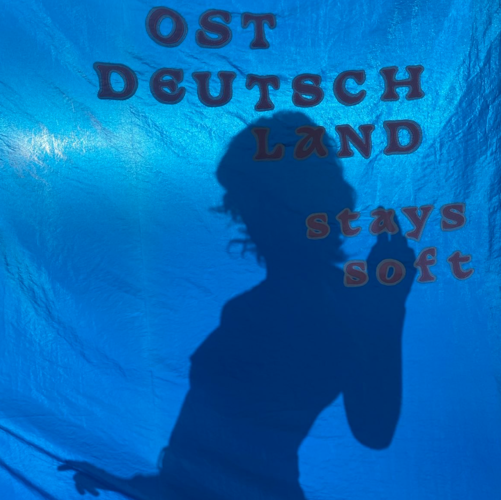 „Ostdeutschland stays soft" ist eine Decke. Sie ist groß weich und warm. Mit Angelika Waniek, Felix Pacholleck, Maike Seebach, Marina Petkoglo, Marlen Riedel, Nancy Göring, naroma, Kreussel